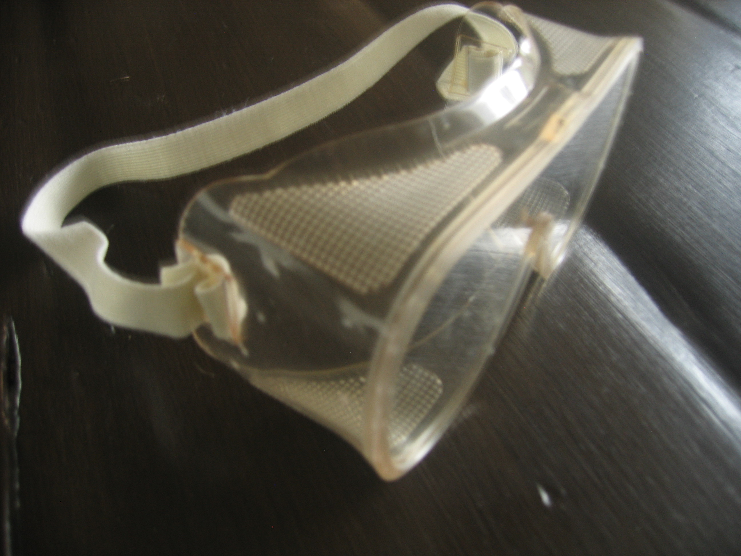 kunststof bril, zijkappen, elastieken band.